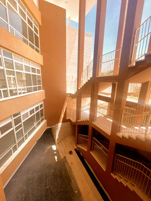 התכנון משלב ציר מדרגות ציבורי בין שני המבנים המקשר בין הרחוב לואדי
